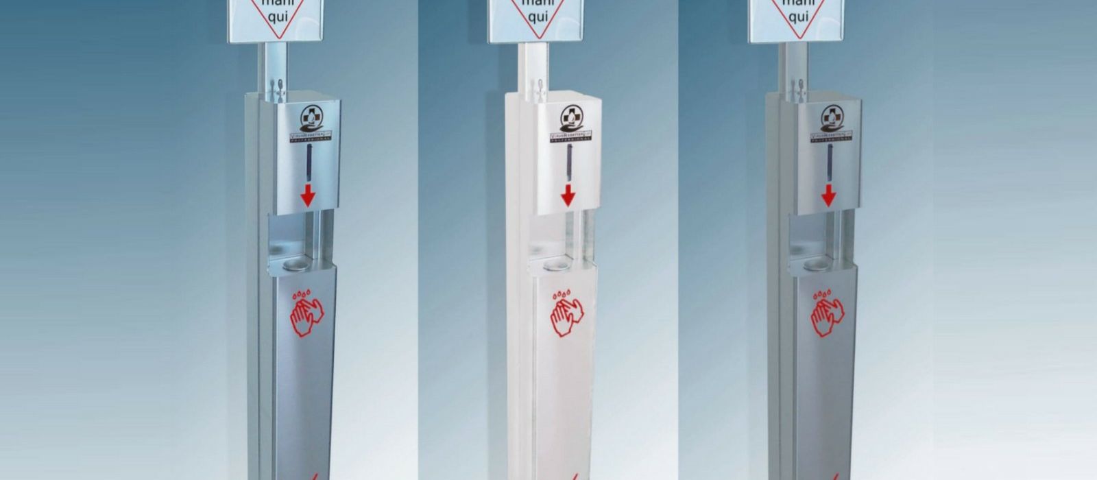No mainteinance and no energy required, sanitizer is provided by operating the pedal. 900ml rear tank gel has only to be refilled. It can be placed everywhere. Made in Italy.