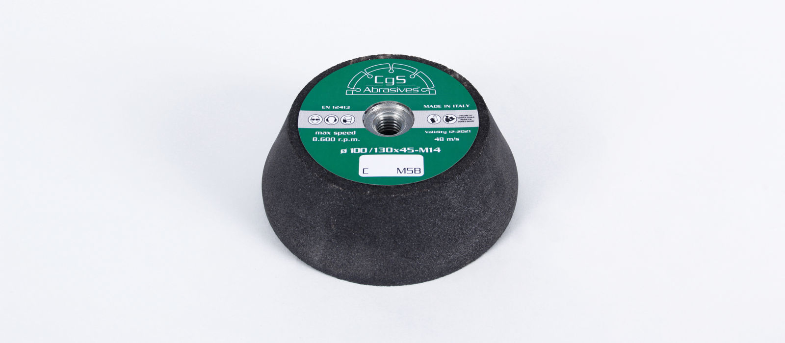 Lowered flaring cup wheel, to be used where bigger supporting surfaces are needed. Suitable for angle grinders due to its M14 fitting. Made in Italy.